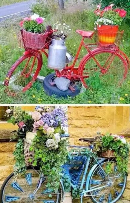 9.将老式自行车涂上绚丽的颜色,种上花草,真的不能更文艺啦