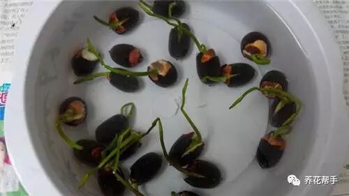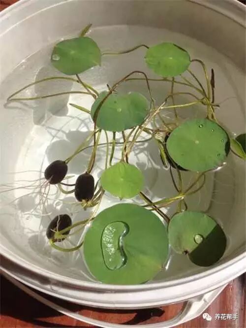 浸种催芽:把开口的种子直接装在碗里,加水浸泡即可,未发芽前,一天换两次水,一周内可以发芽,两周内会长细根和小荷叶。天气冷时,生长周期会更长些。