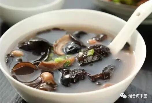 >>>本汤来源于《药性考》,原名为海参木耳羹。汤中木耳性味甘平,含有多种维生素,有养血益阴、滋润肠燥的作用,《药性切要》说它有“润燥利肠”之功。海参性味甘咸温,功能补肾益精、养血润燥,《本草求源》说它有“润五脏,滋精利水”的作用。