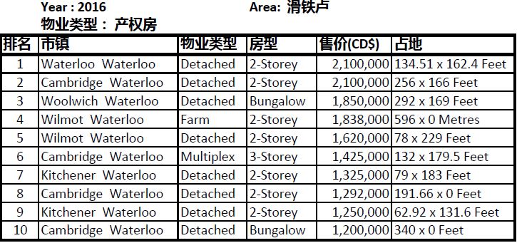 在过去的2016年,在安省滑铁卢地区售出了无数的物业,价格有高有低。