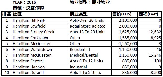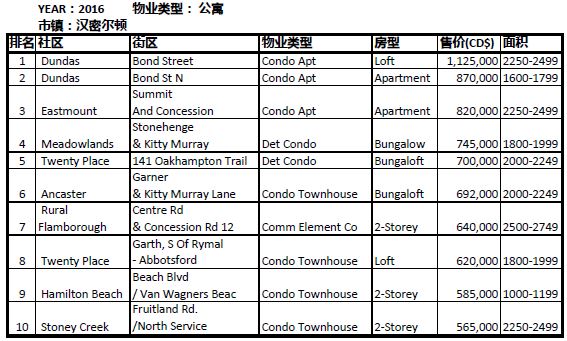 在过去的2016年,在安省汉密尔顿地区售出了无数的物业,价格有高有低。
