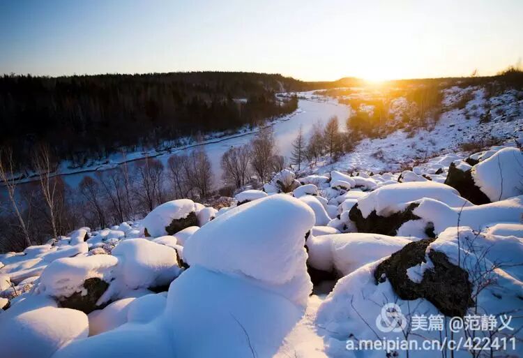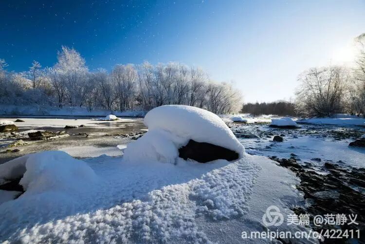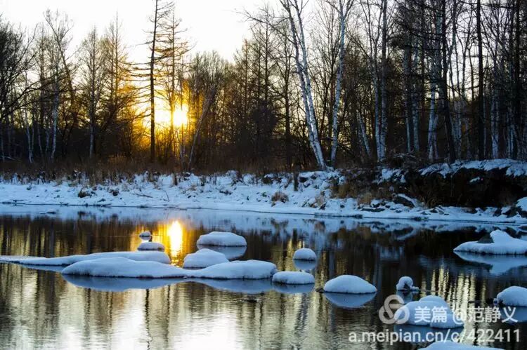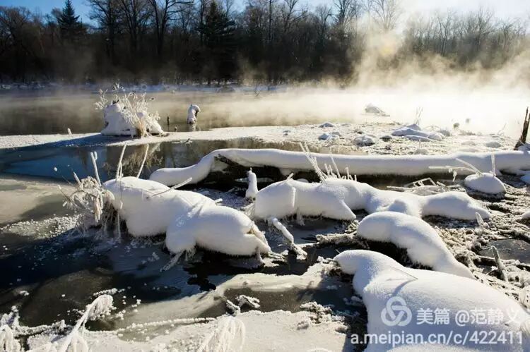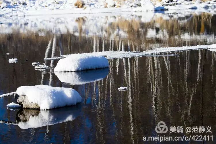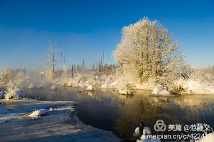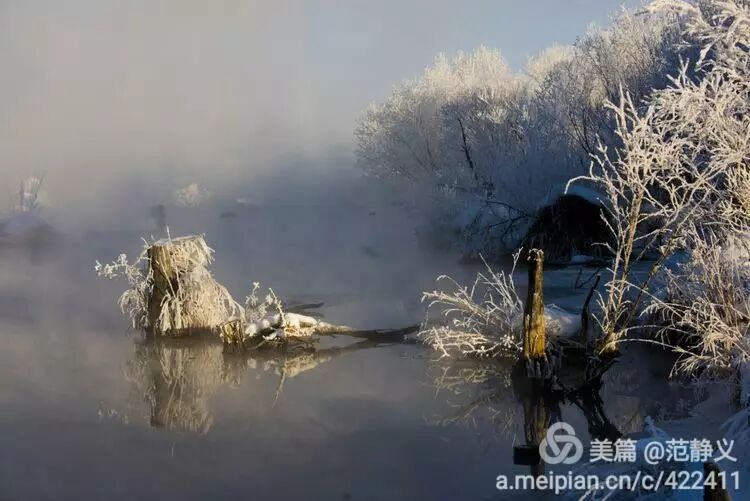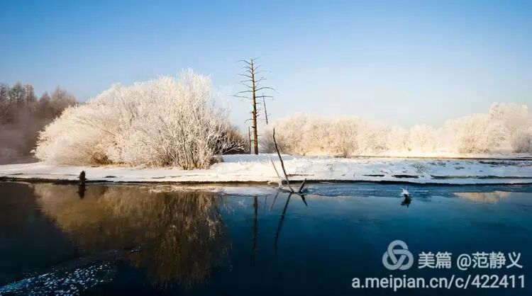 拍摄雾凇的时候可以利用水中的倒影进行构图,以上两张片子拍摄于阿尔山不冻河,因为没有雾凇,我就利用水面的倒影拍摄了这张片子。