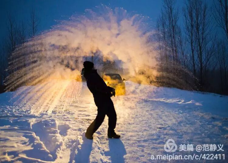 冬天拍冰雪,利用北方寒冷的空气,自创场景来拍摄,道具仅用一杯热水,车灯或太阳光,也可以拍出炫目的片子。
