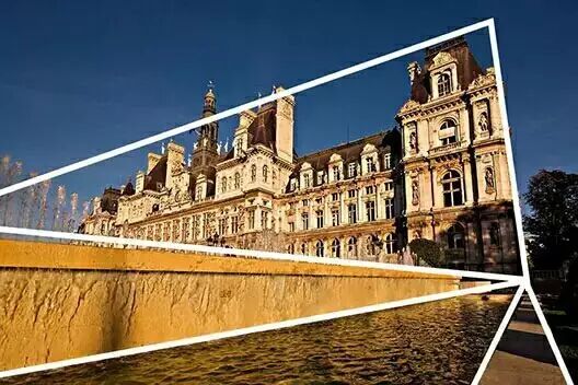 黄金三角形构图和三分法的方式非常相似。但并非矩形网格,我们把画面对角线连接,分割成三角形。这种创作方式帮助我们形成技巧六中的元素“动态张力”。