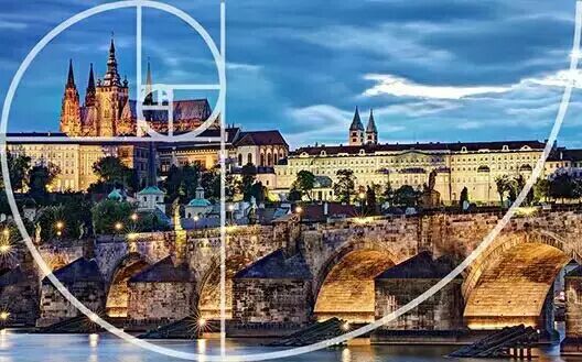 这张照片摄于布拉格,既拍下了桥梁、建筑、小河、天空等大量风景,又重点突出——左上角的教堂处于黄金螺旋的正中心