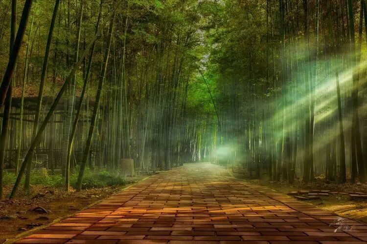 下图的石板路虽不是规则的花纹,但是光影的效果让其更具历史感。